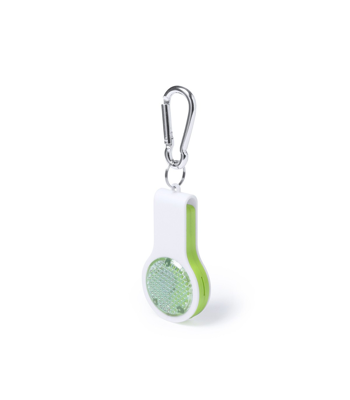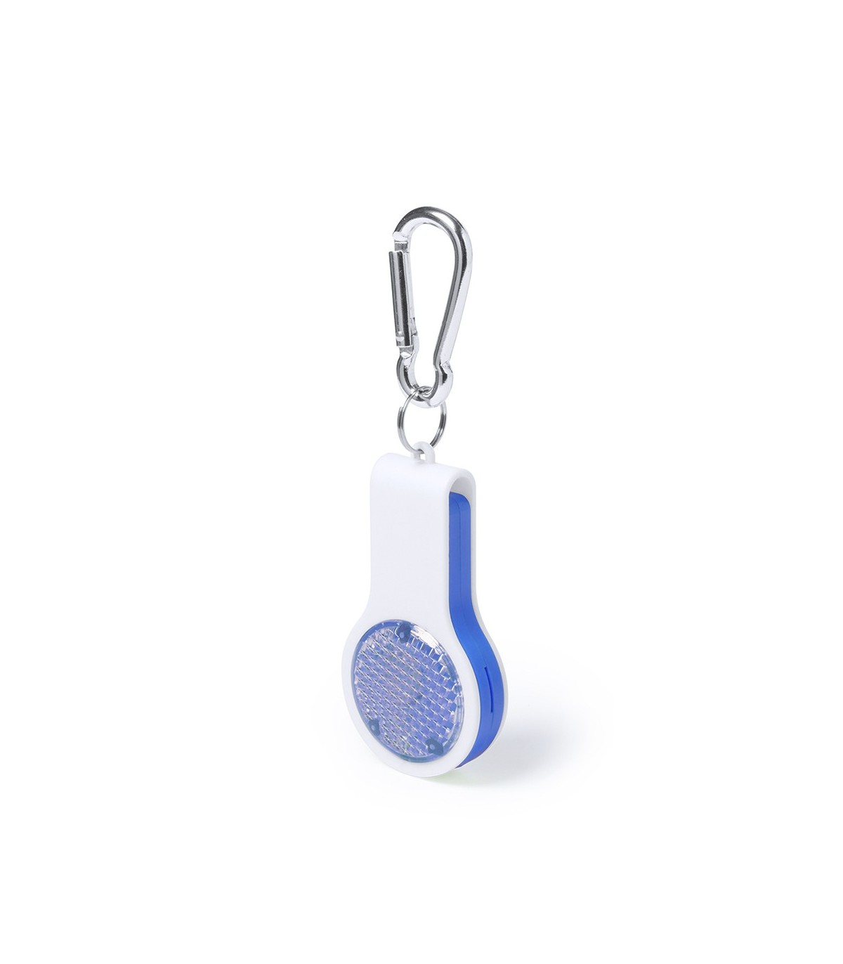 Original silbato plegable con luz led, de original diseño bicolor y con mosquetón metálico de transporte. Con pila de botón incluida y presentado en caja individual.