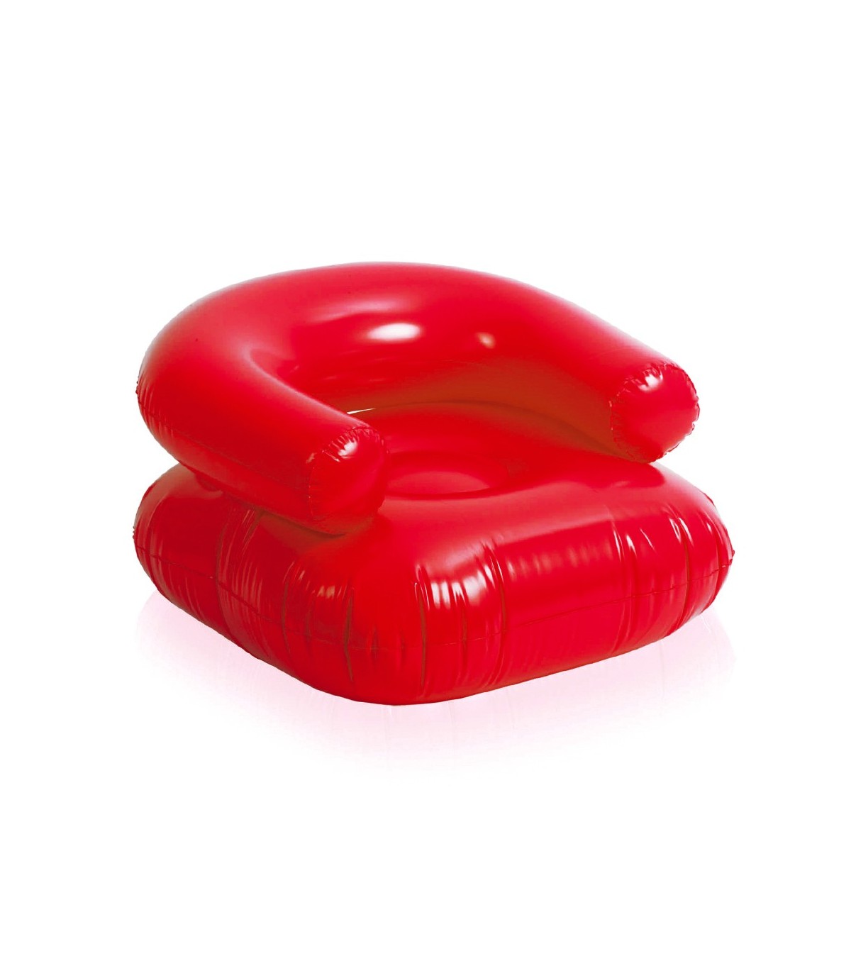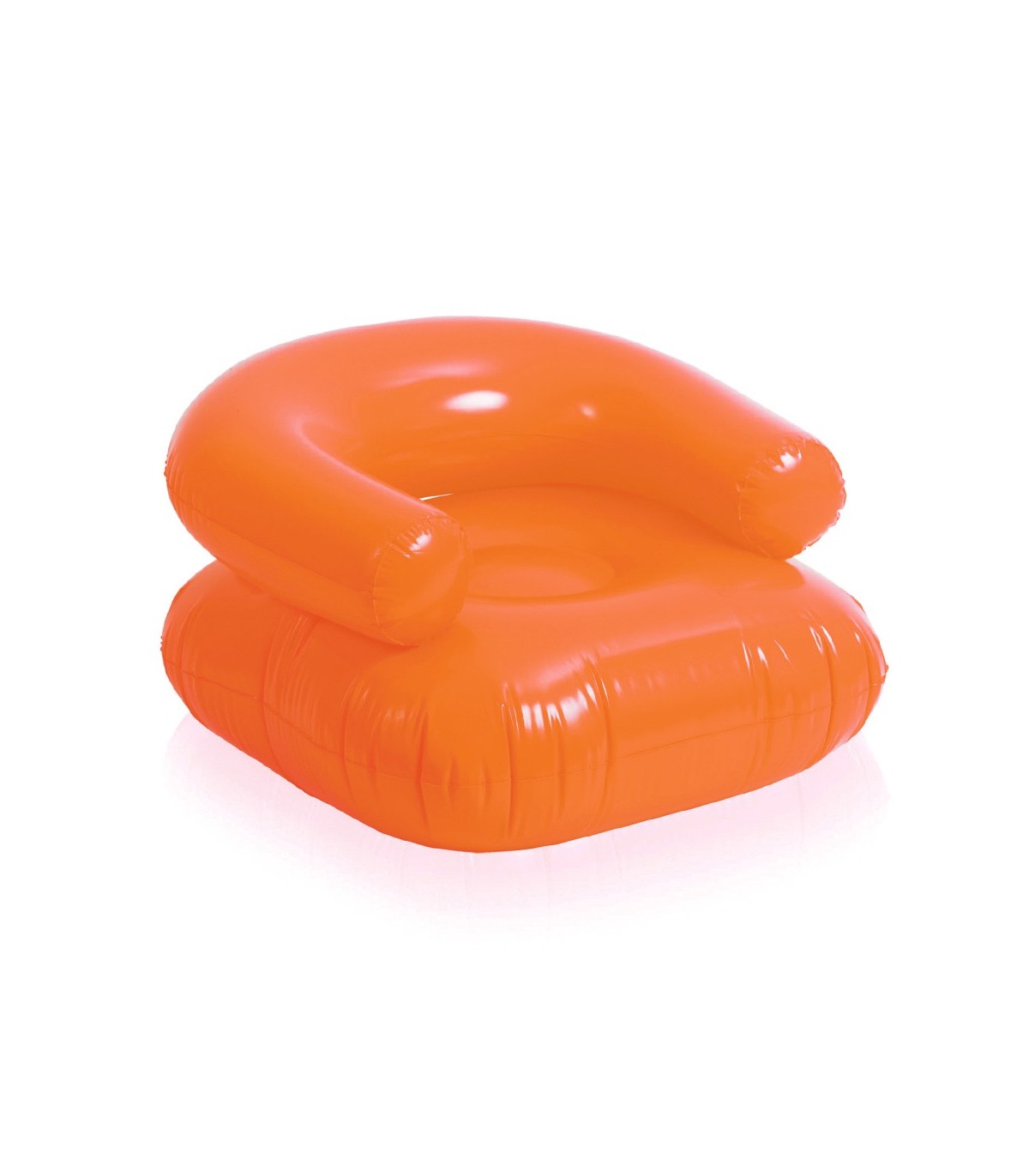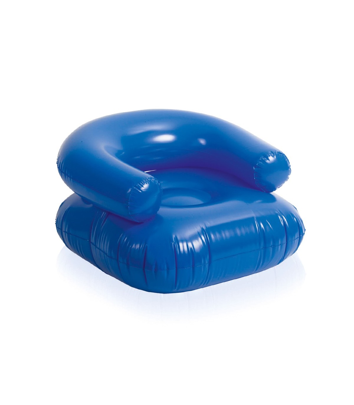 Sillón inflable en PVC de confortable respaldo y con asiento reforzado en diferentes colores muy originales y llamativos. Presentado con plegado especial para fácil impresión.