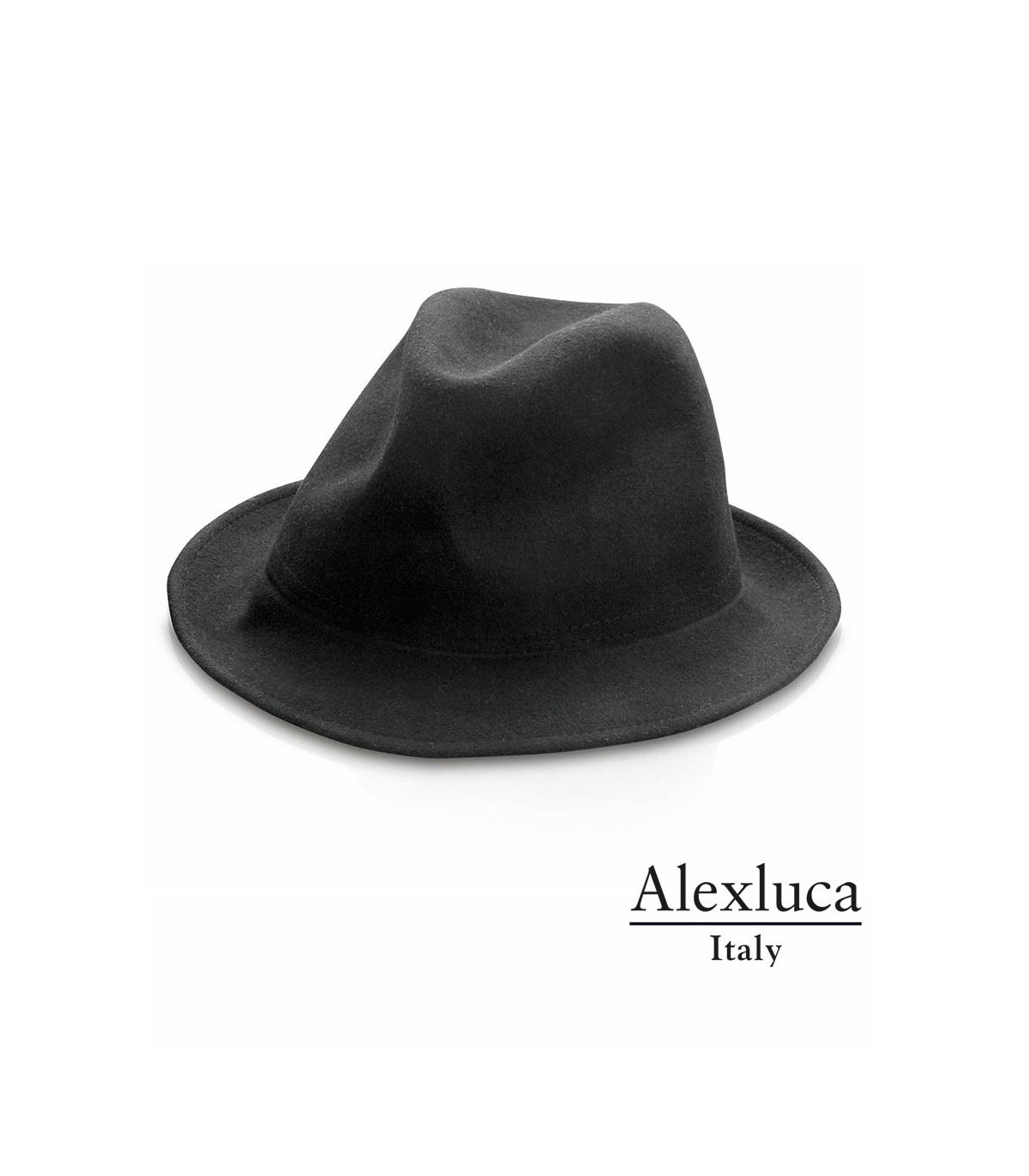 Elegante sombrero de poliéster diseño de Alexluca con alta calidad y diseño en color negro. De suave interior y estuche individual con logotipo de la marca.
