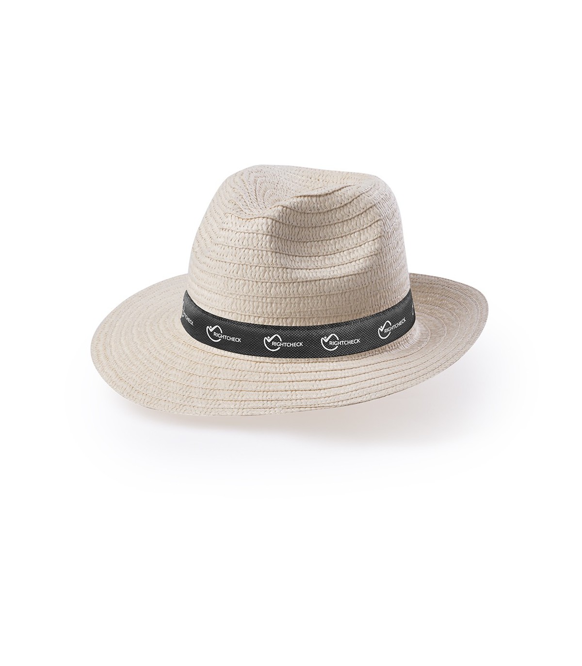Sombrero en fibra sintética de alta calidad. Con cinta interior y orificios de ventilación.