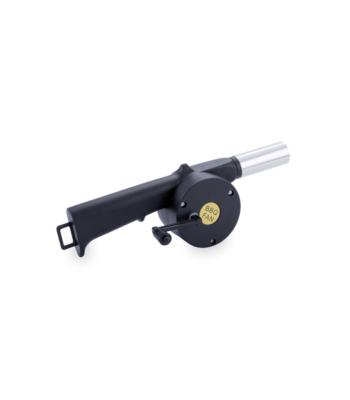 Soplador para avivar el fuego con ingenioso mecanismo de soplado mediante manivela.