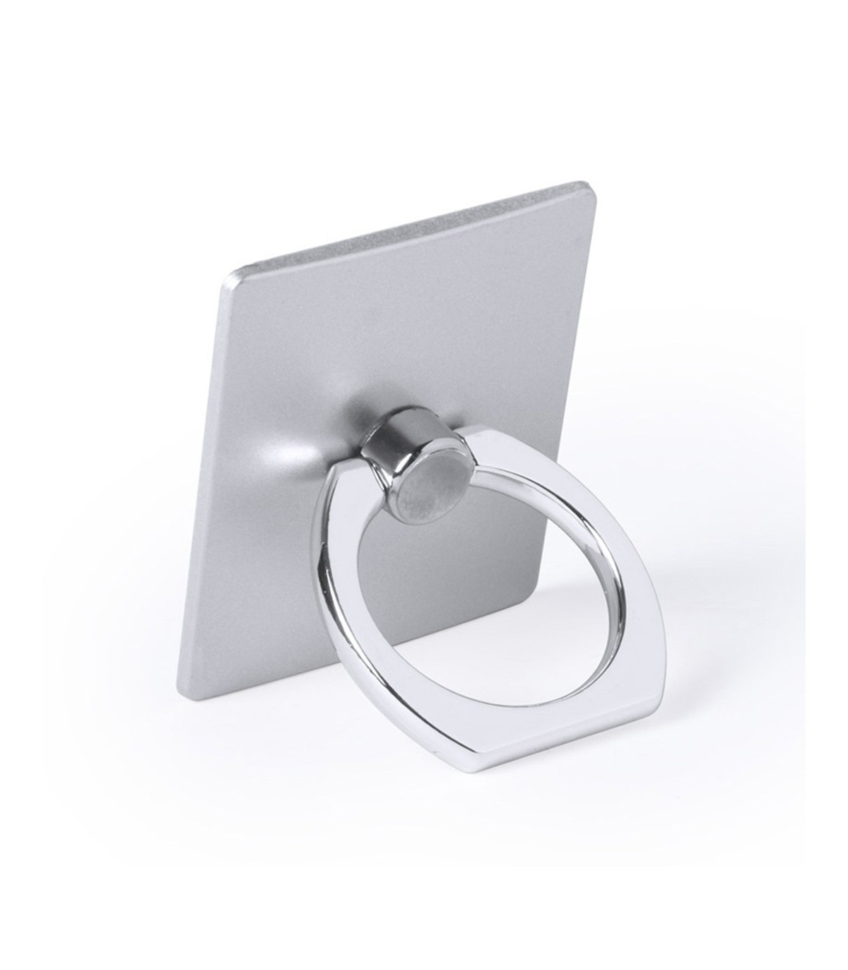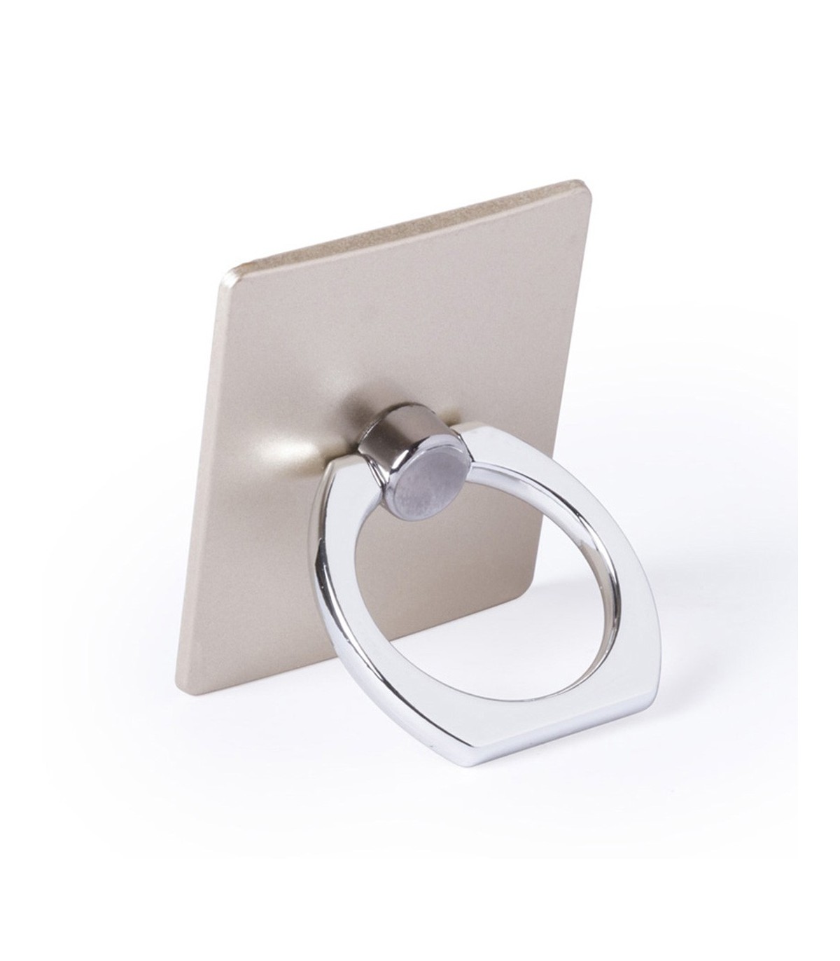 Soporte adhesivo para smartphone de diseño minimalista plateado y dorado. Con anilla posterior para dedo con función de soporte y accesorio para selfie.