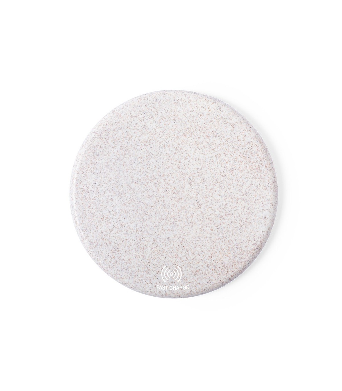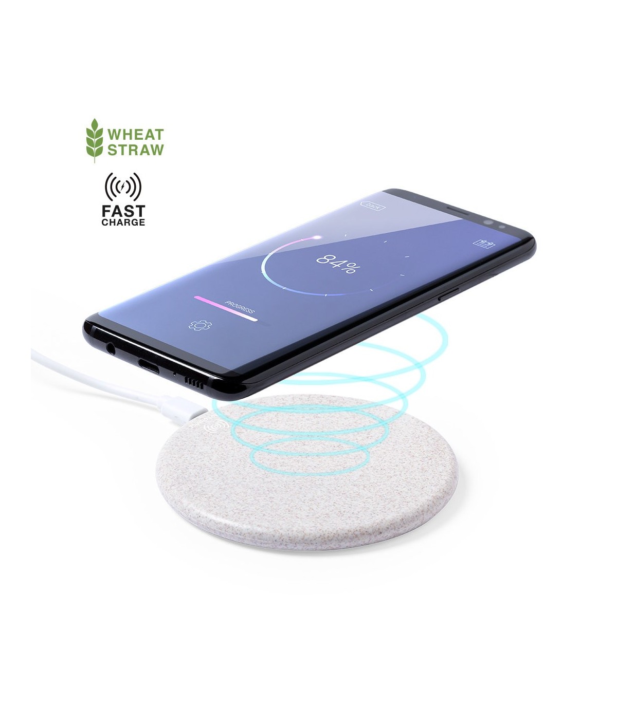 Cargador inalámbrico de diseño circular fabricado en caña de trigo, para así fomentar la utilización de materias primas naturales y reducir las emisiones contaminantes. Con función carga rápida de 10W e indicador led. Cable de carga micro USB incluido y compatible con dispositivos equipados con tecnología de carga inalámbrica. Protección de seguridad para evitar sobrecalentamiento, sobrecarga y cortocircuito. Presentado en atractiva caja de diseño nature.