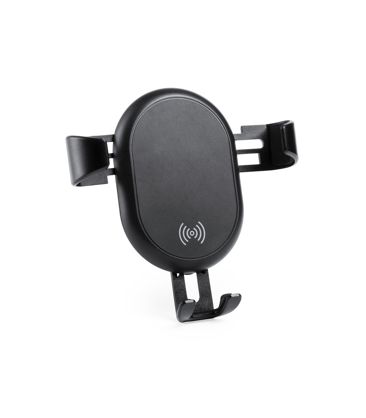 Soporte de rejilla de coche para smartphone con cargador inalámbrico integrado. En elegante color negro, con mecanismo de auto ajuste que usa el propio peso del teléfono móvil. Presentado en atractiva caja de diseño.