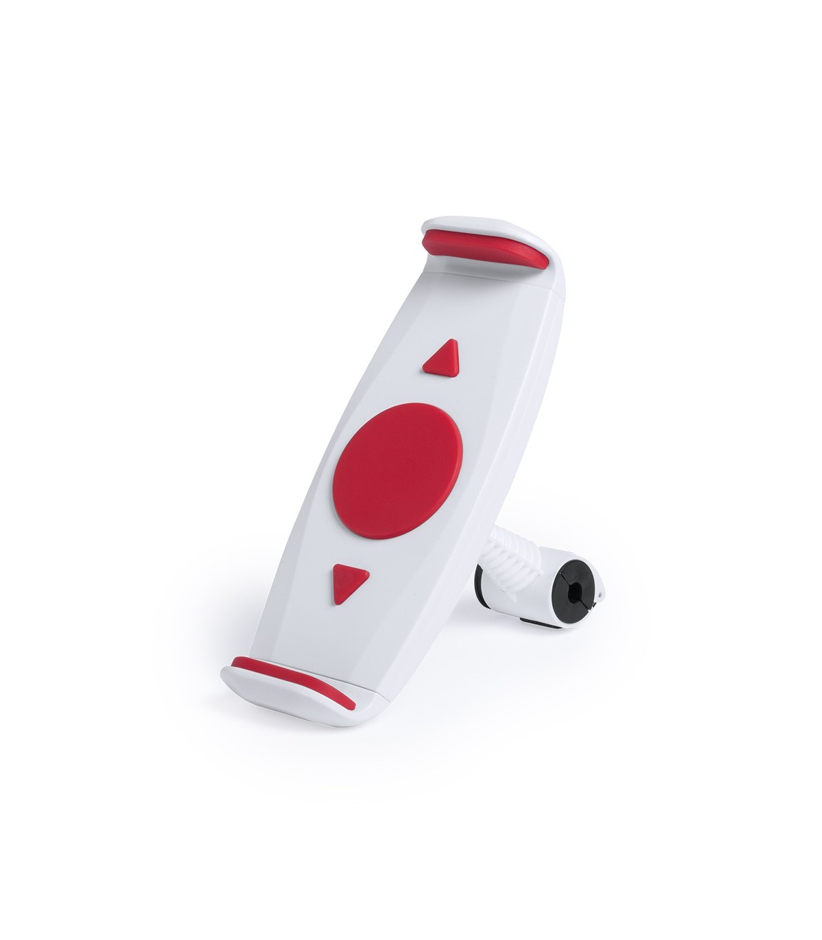 Original soporte para dispositivos móviles de hasta 10 pulgadas para acople a la barra del cabecero del coche. En variada gama de colores, giratorio 360º y con gomas anti deslizantes de alta sujeción.