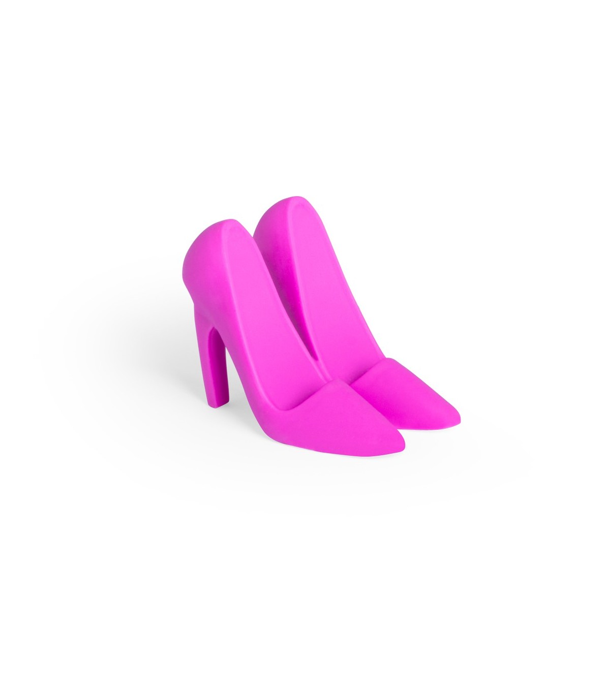 Original soporte para smartphone en forma par de zapatos de tacón en suave y resistente silicona de llamativos colores.