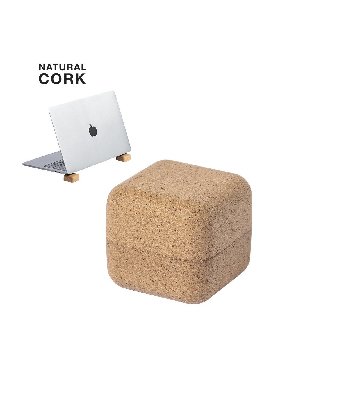 Soportes ecológicos para ordenador portátil personalizados. Magnéticos y antideslizantes, de fabricados en corcho. Con embalaje en original caja de diseño eco.