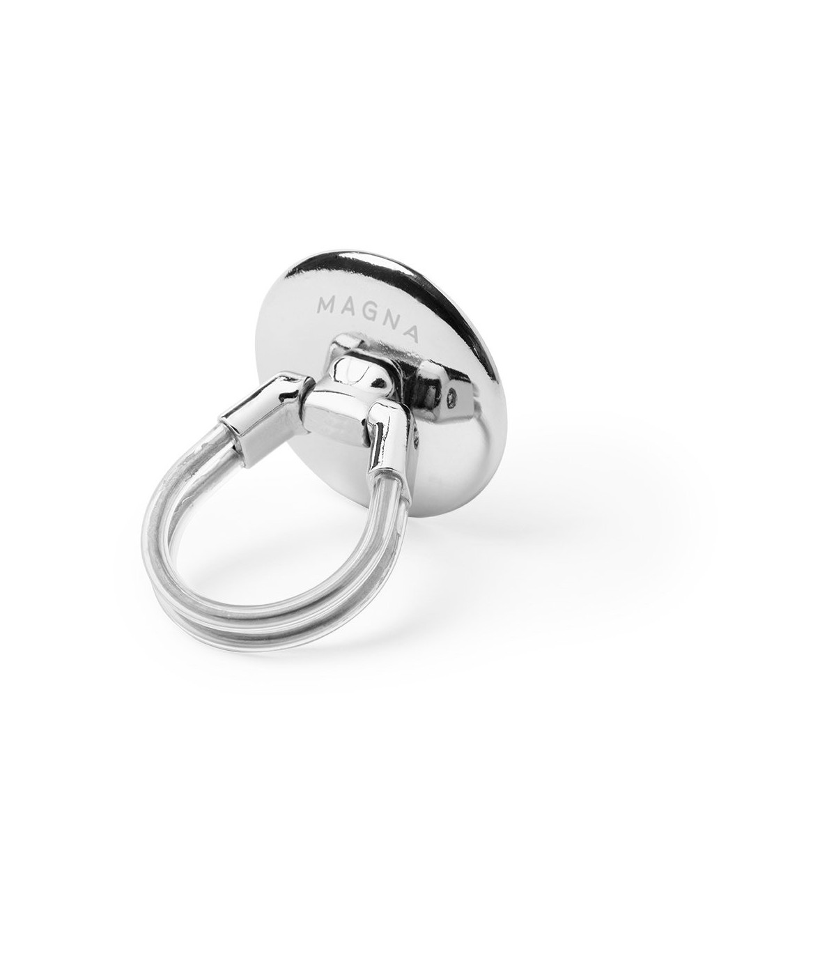 Soporte selfie en metal cromado para smartphone. De elegante diseño y con adhesivo 3M, de fijación extra fuerte y libre de residuos al despegarlo del dispositivo. Con doble anilla soporte posterior, para dedo y rejilla del salpicadero del vehículo. Presentado bolsita de diseño individual.