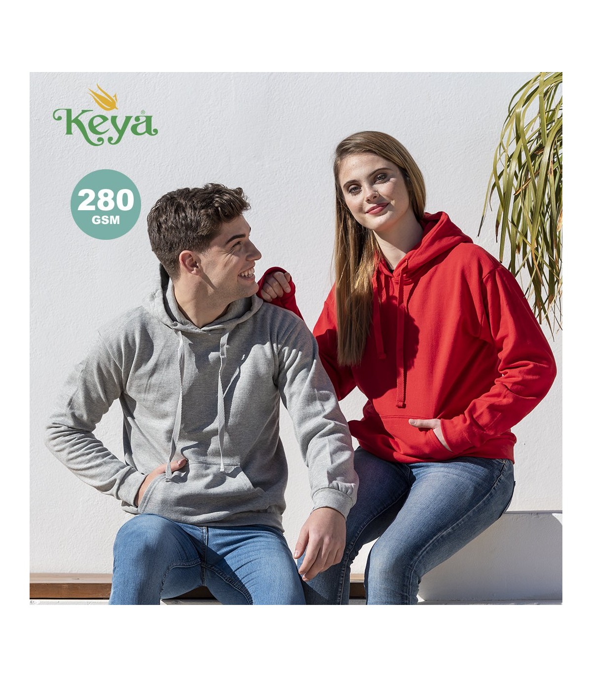 Sudadera para adulto con capucha de Keya SWP280 en combinación de materiales algodón y poliéster de 280g/m². Con cordones a juego y bolsillo frontal. Disponible en extensa gama de vivos colores y en tallas S, M, L, XL, XXL, 3XL.