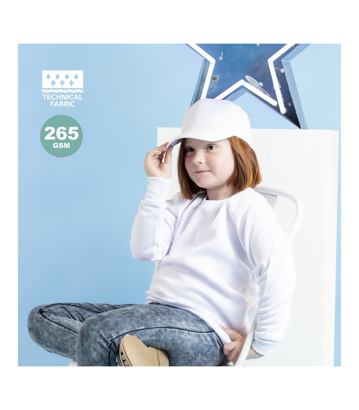 Sudadera técnica para niño unisex. En material 100% poliéster de 265g/m². Disponible en originales colores para imprimir con tu diseño. Tallas 4-5, 6-8, 10-12.