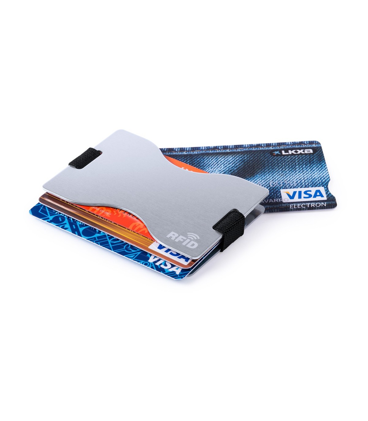 Tarjeteros de aluminio ideales para tarjetas de crédito con protección de banda personalizados para regalar con tu logo impreso.