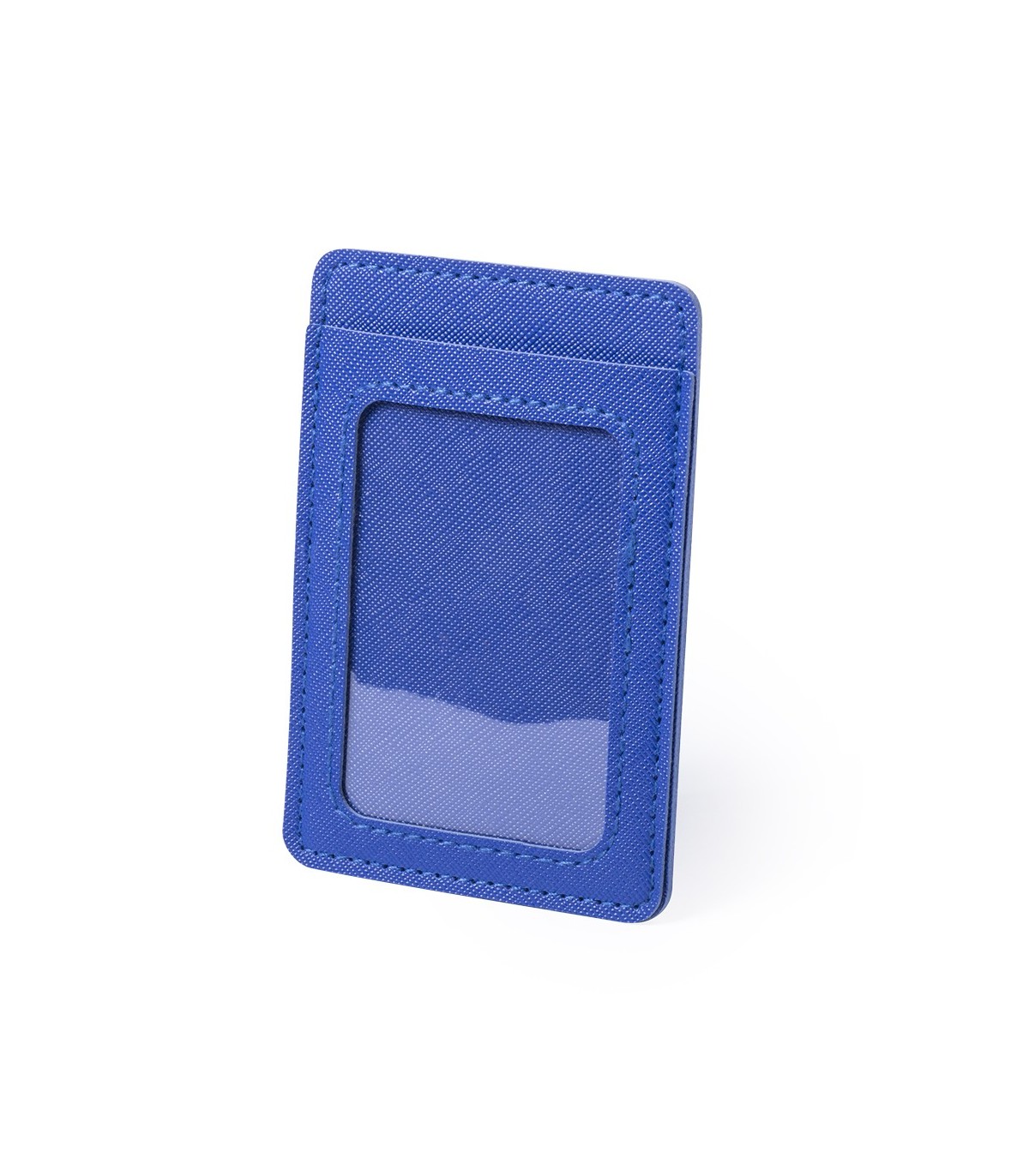 Tarjetero billetero en suave y resistente polipiel de vivos colores. Compartimento con ventana de PVC transparente frontal y trasera con funda para tarjetas y billetes.