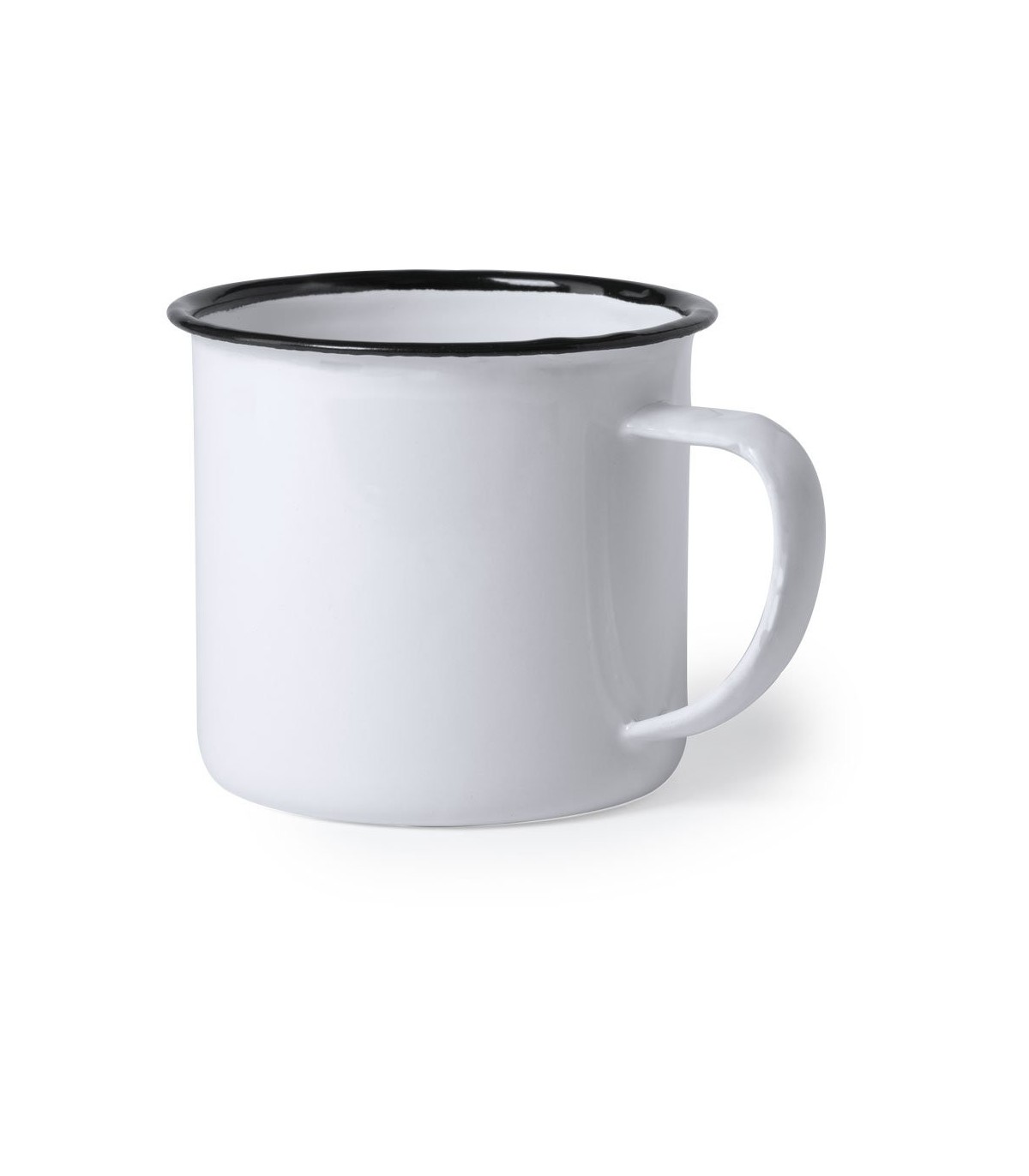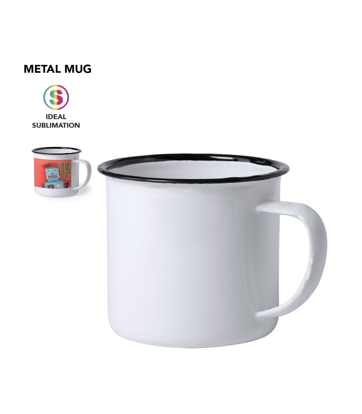 Taza metálica de diseño retro con 380ml de capacidad. Especialmente diseñada para marcaje en sublimación, con elegante detalle en color negro y Presentación en embalaje individual. Acabado irregular para resaltar el aspecto vintage de la taza.