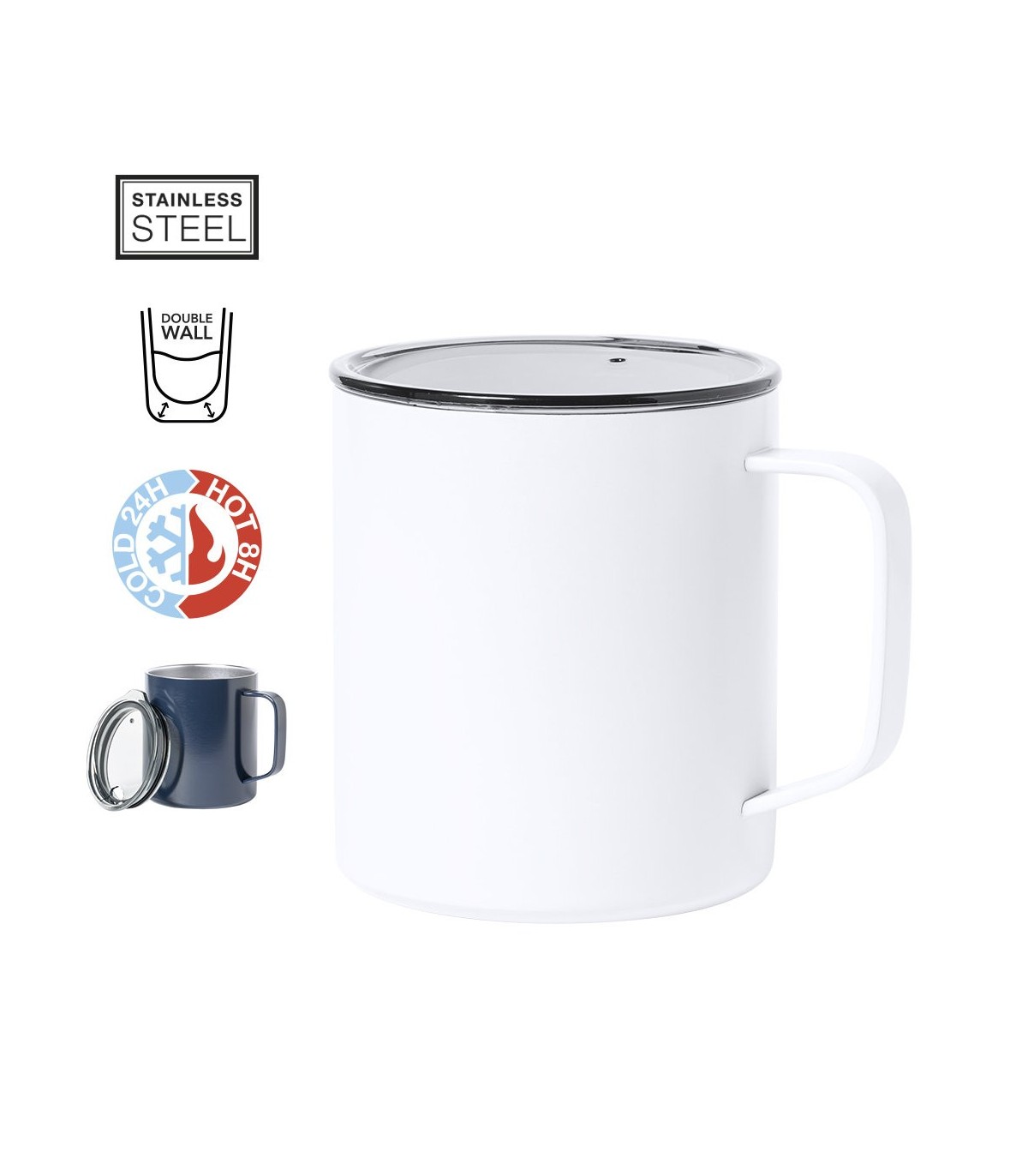 Tazas térmicas con doble pared y aislamiento de cobre al vacío, que permite mantener el calor y el frío durante un tiempo más prolongado, llegando a las 8 y 24 horas.