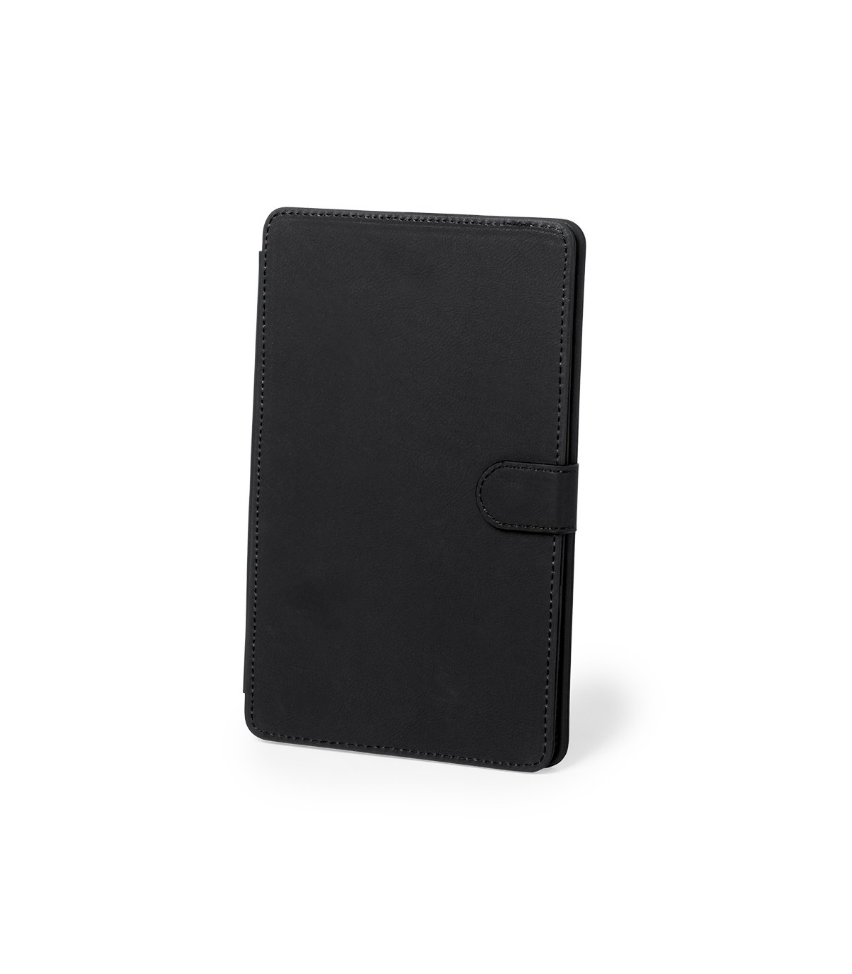 Teclado bluetooth con soporte para dispositivo móvil en suave acabado de polipiel y solapa de cierre magnético, recargable mediante cable mini USB -incluido-. Compatible con cualquier sistema operativo.