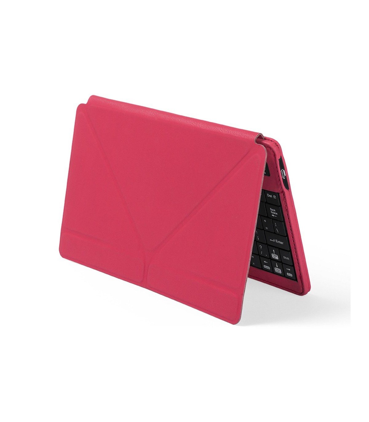 Teclado Bluetooth® con función soporte para tablet en suave acabado de polipiel. De diseño compacto, en atrevidos colores y recargable mediante cable mini USB -incluido-. Compatible con cualquier sistema operativo y presentado en atractiva caja de diseño.