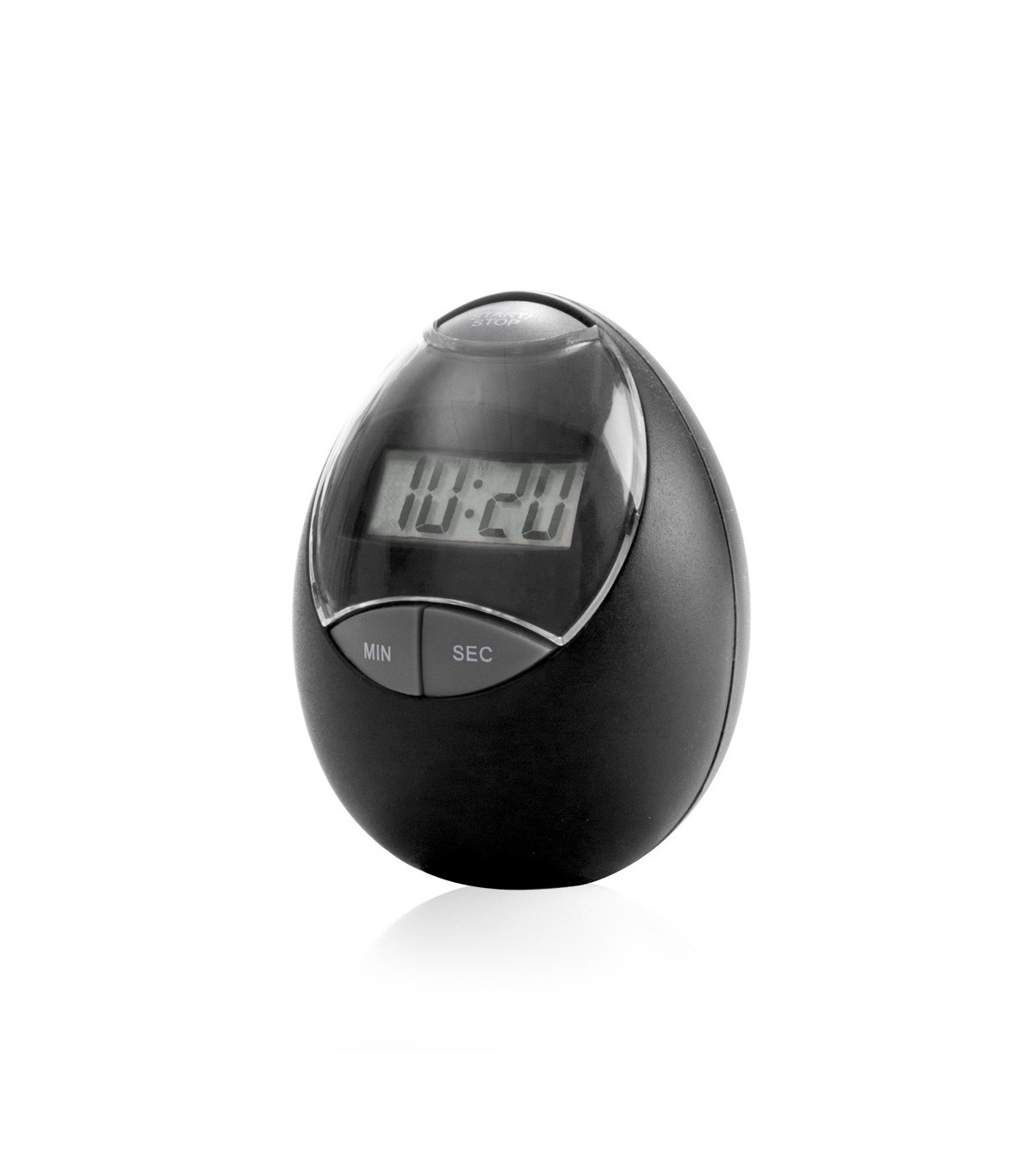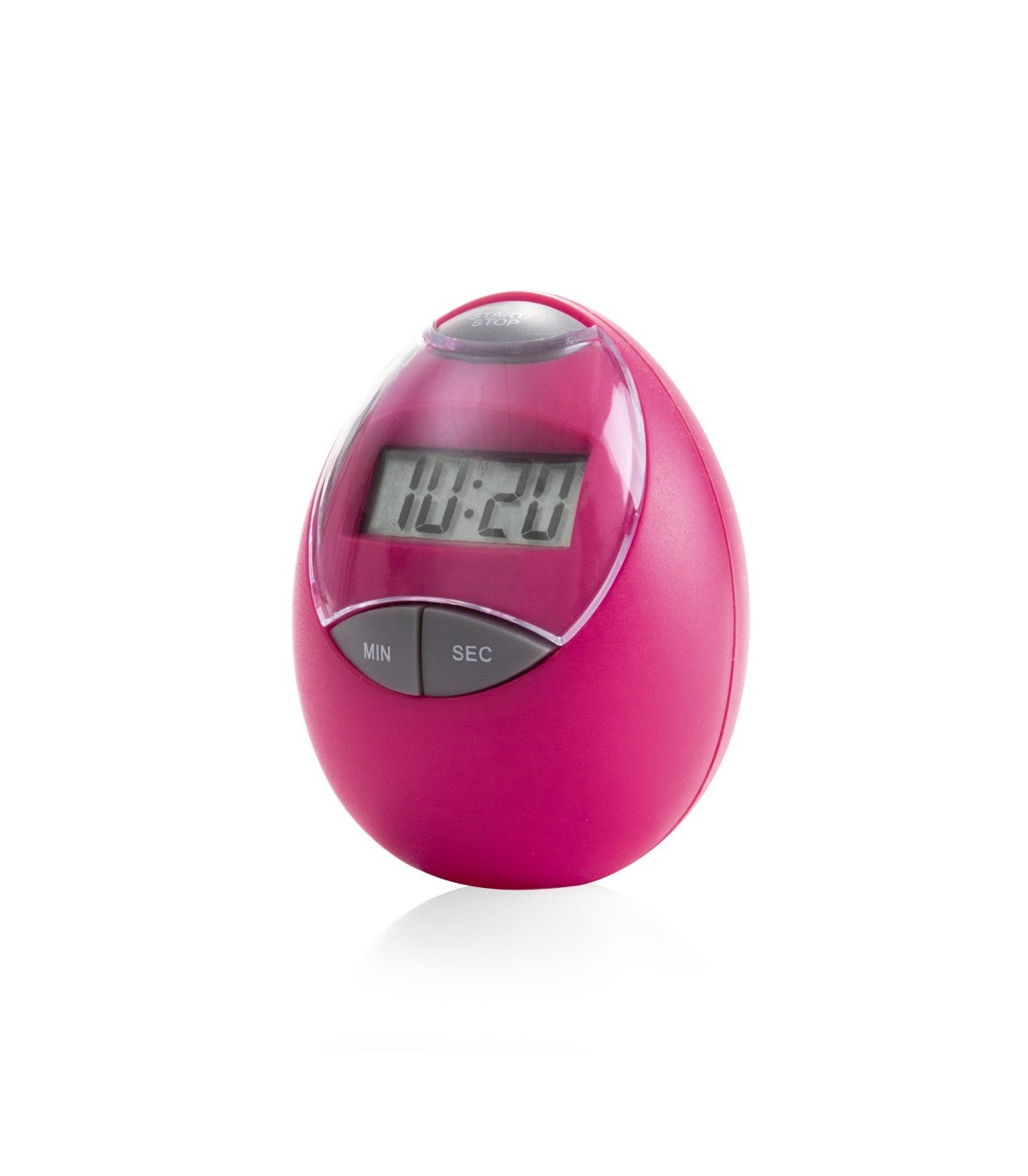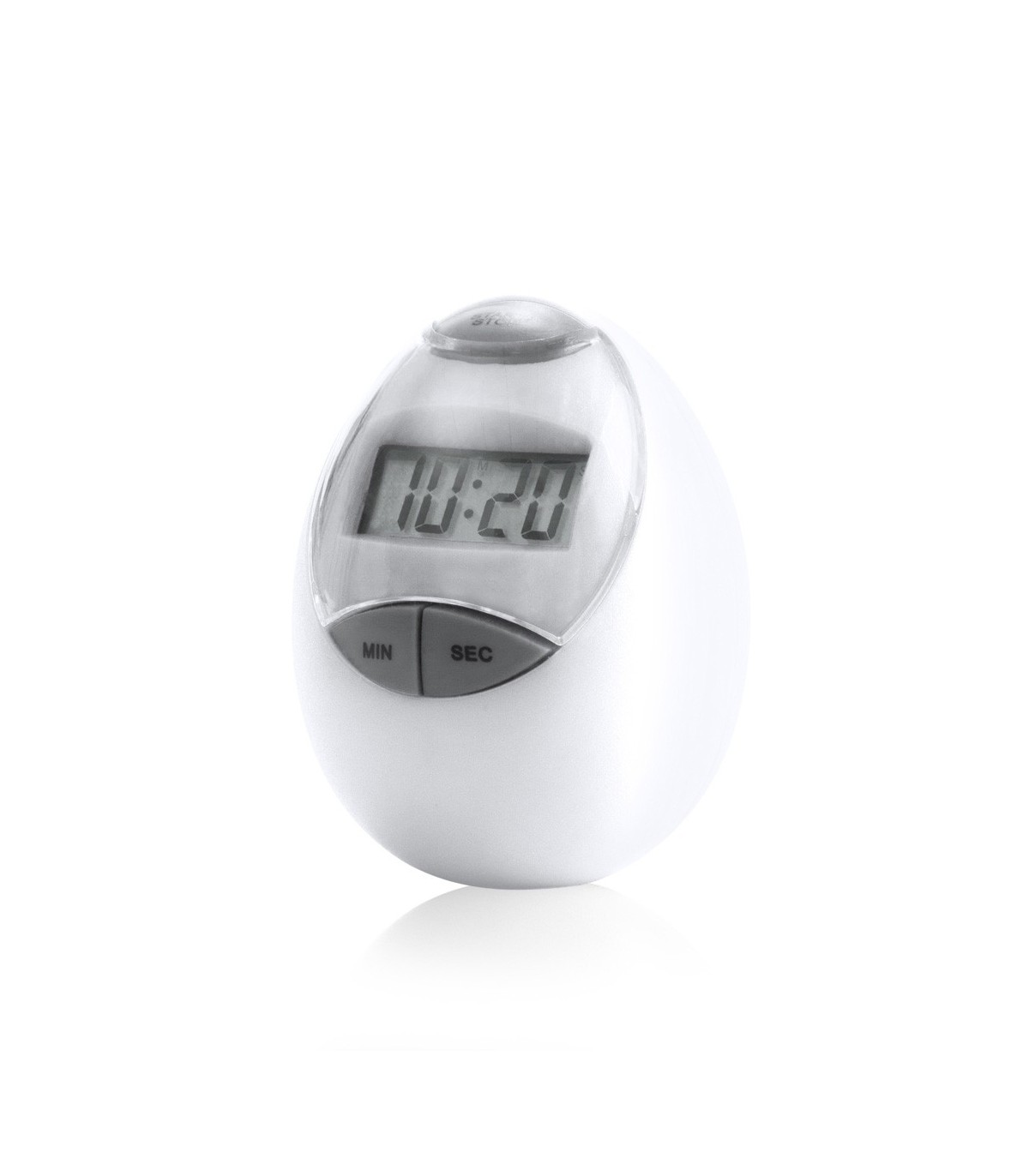 Temporizador digital de original diseño ovalado con tapa en transparente y cuerpo en alegres colores. De hasta 100 minutos de duración y con función cronómeto. Alimentación a pila: 1x AAA no incluida y presentado en caja individual.