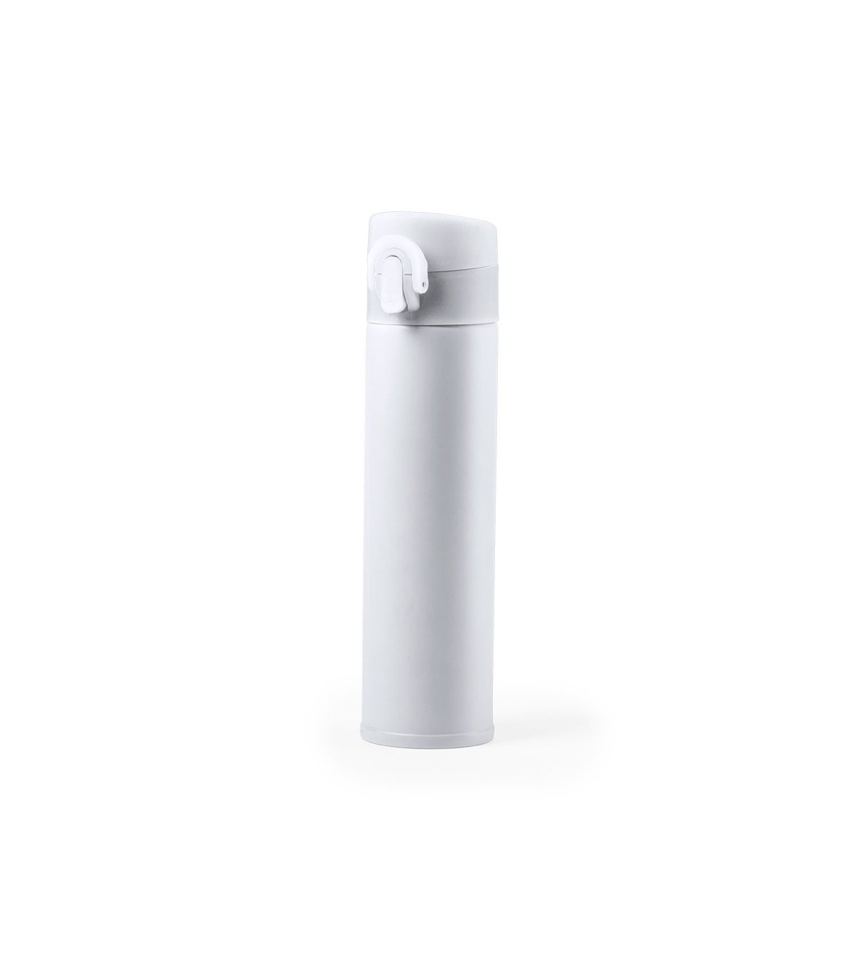 Termo en acero inox de 330ml de capacidad. Con sistema de apertura fácil con botón. Ideales para regalos de empresa personalizados.