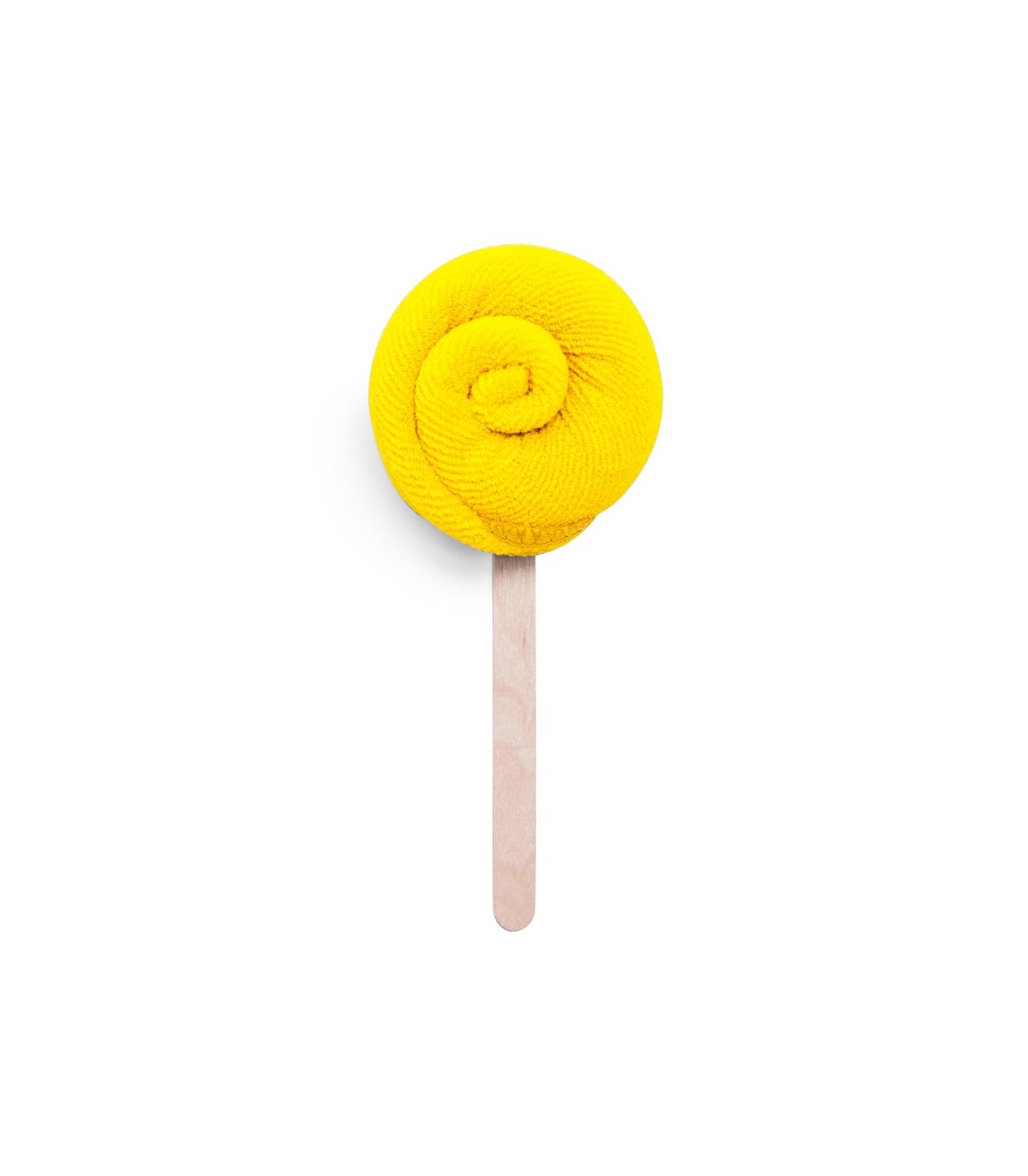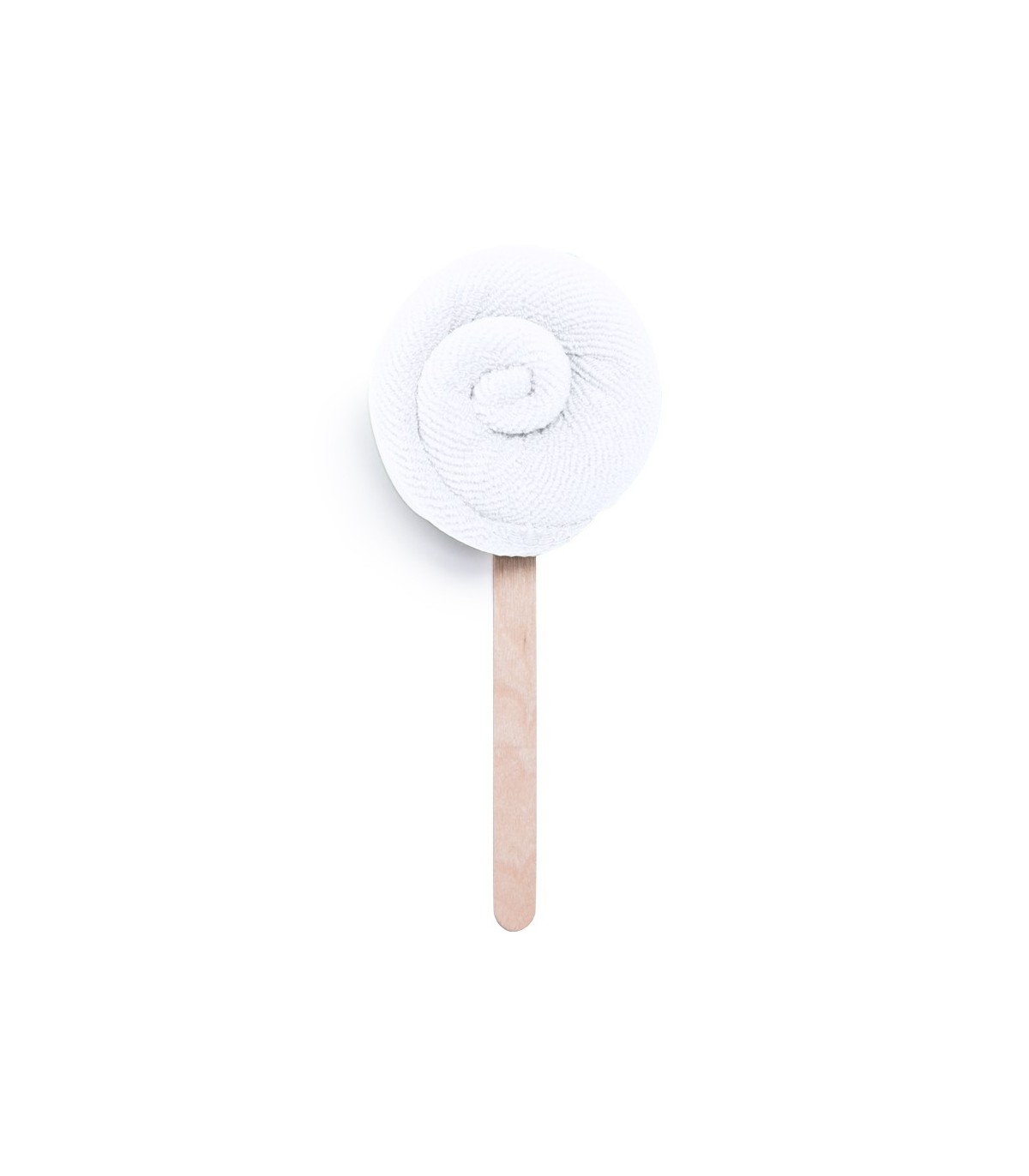 Divertida toalla piruleta en absorbente y suave microfibra de 260g/m2 en vivos colores. Con palito de madera para fácil marcaje.