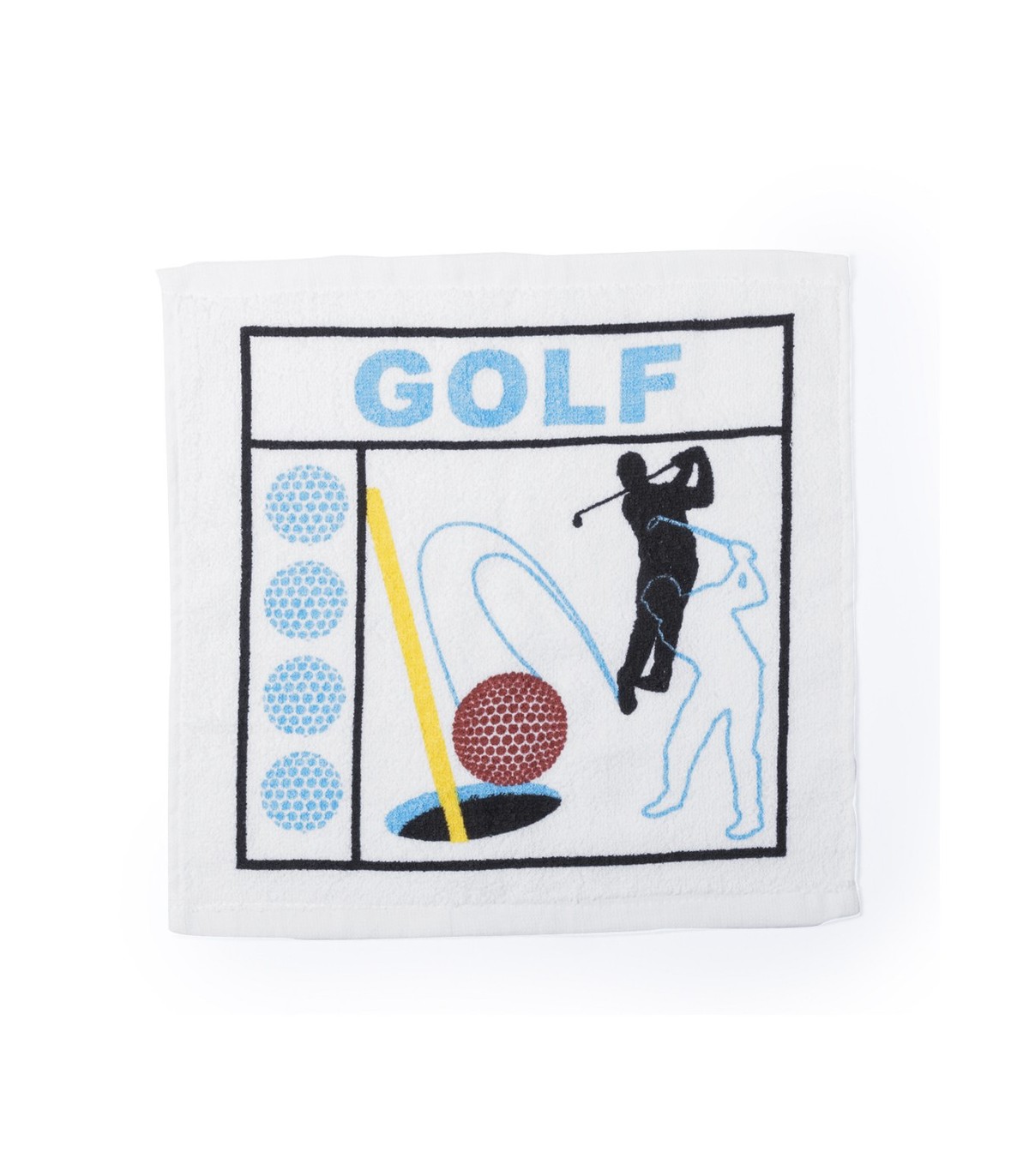 Original toalla en material 100% algodón de 245 gramos. Plegada dentro de bola con diseños fútbol, baloncesto, tenis y golf. Bola retractilada en bolsa y presentada en funda de poliéster con mosquetón metálico de transporte