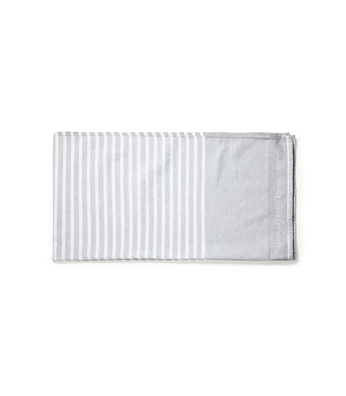 Toalla de línea nature y acabado gris. De fabricación europea y en combinación de algodón reciclado GRS y poliéster de 330g/m2. Con certificación GRS (Global Recycled Standard / Estándar de Reciclaje Global) que acredita el origen reciclado del material usado en la fabricación del producto. Tamaño 150 x 80 cm.