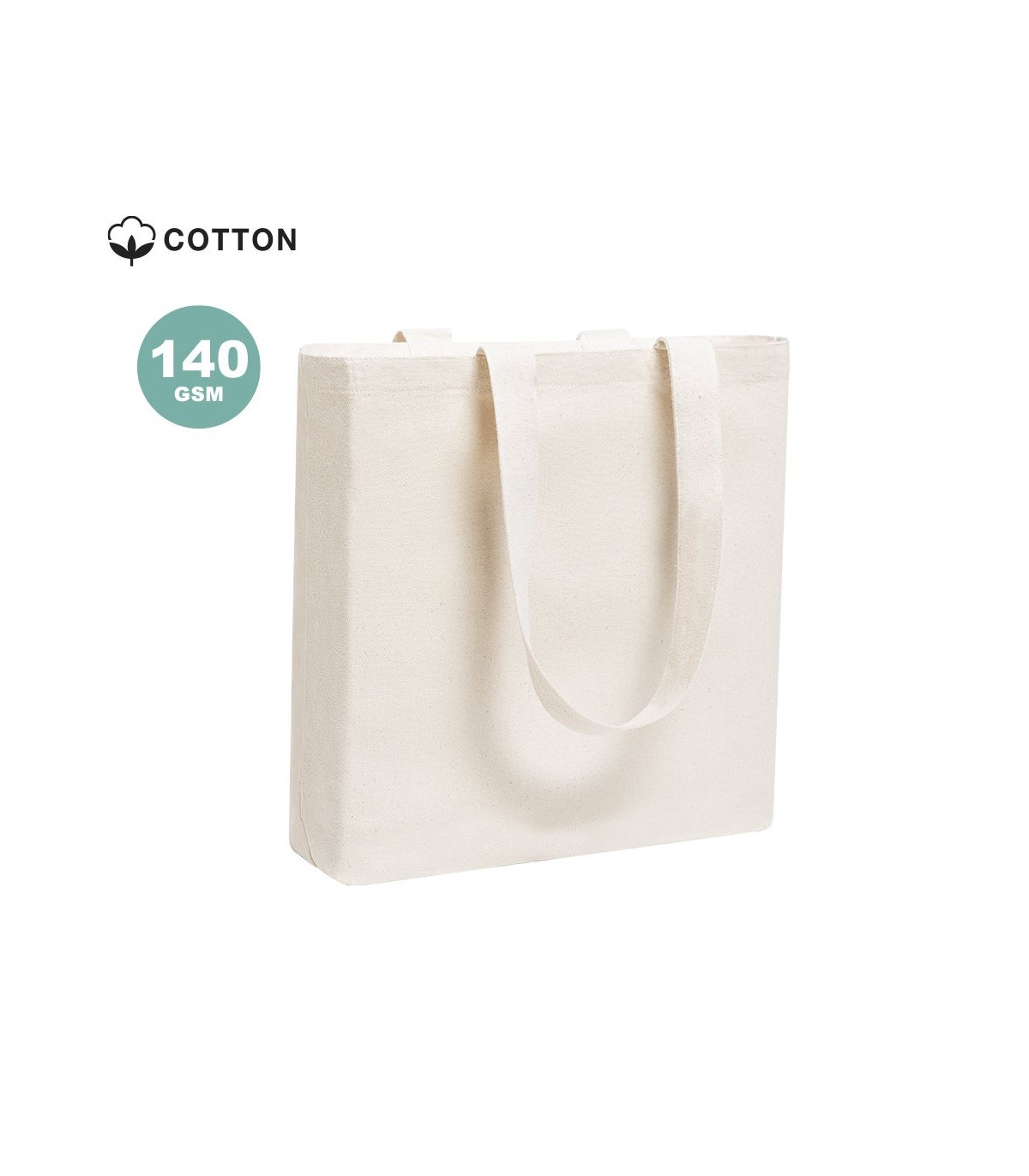 Bolsa tote de línea nature en algodón de 140g/m². Asas medianas en algodón, de 70 cm y reforzadas. Acabado cosido y resistencia hasta 8kg de peso.