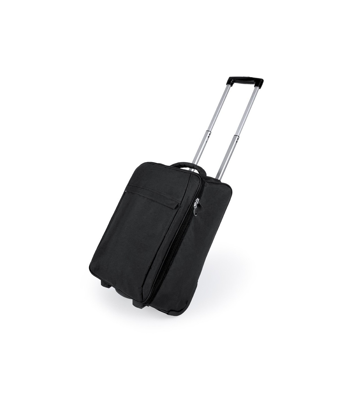 Trolley plegable de alta calidad y 2 ruedas en resistente poliéster 300D de diferentes colores para imprimir con tu logo. Compartimento principal con cierre de cremallera de doble tirador en diseño bicolor y bolsillo frontal con cierre de cremallera. Con asa de mano acolchada y base reforzada con resistentes patas y ruedas a juego. Interior forrado con dos compartimentos independientes multibolsillo y cintas elásticas de sujeción. Asa a juego.