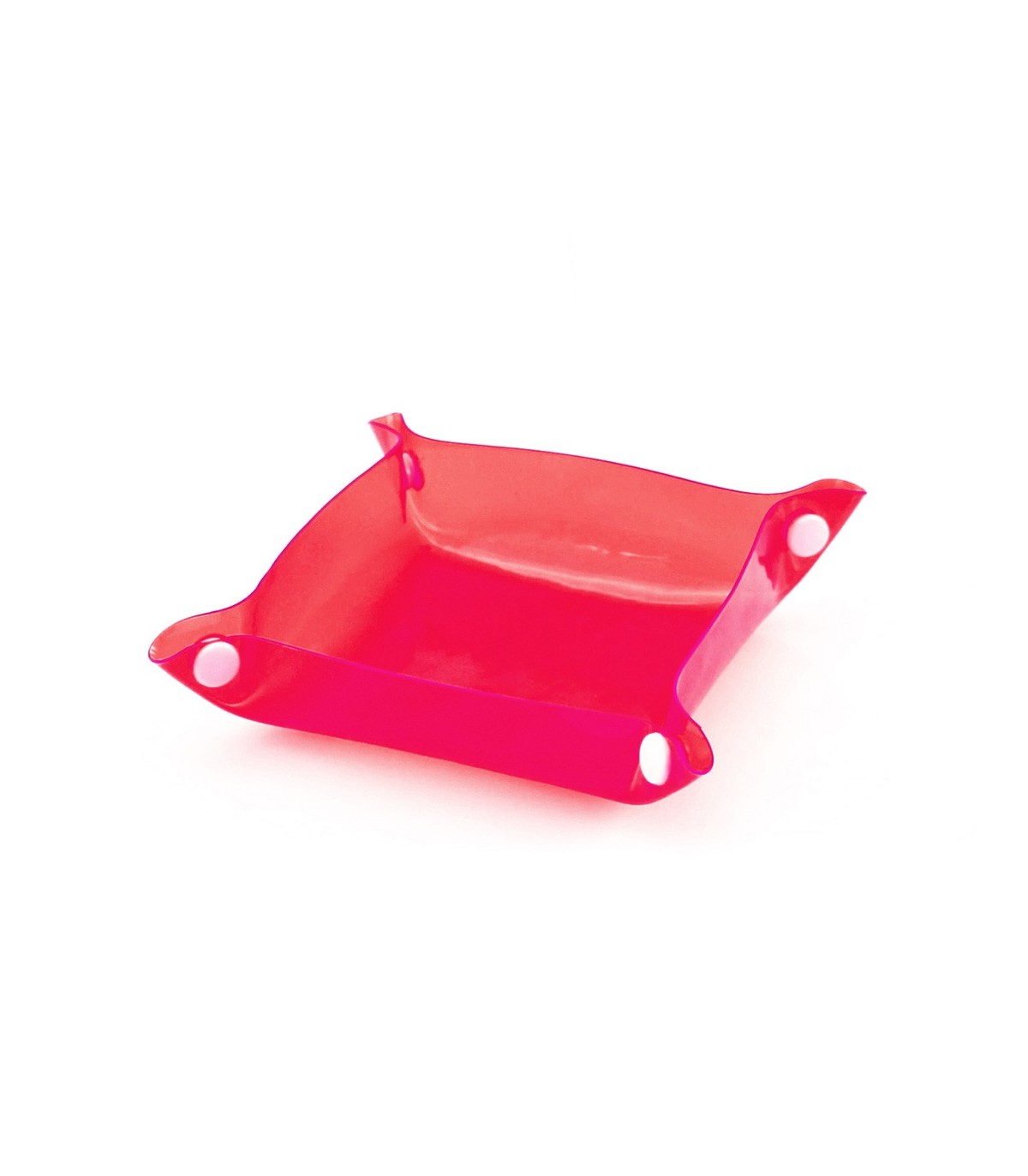 Original vaciabolsillos en resistente PVC de variados colores transparentes. Con cierres de botón en las esquinas.