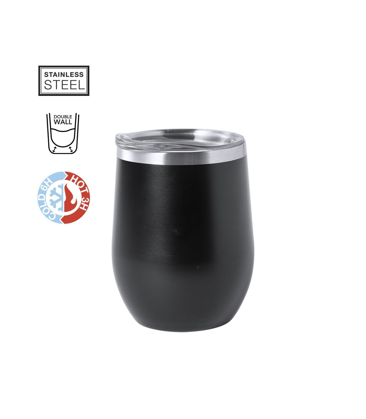 Vasos térmicos de acero inox, con doble pared y 350ml de capacidad. Incluye tapa con dosificador y está disponible en diferentes colores para personalizar. Presentada en atractiva caja de diseño.