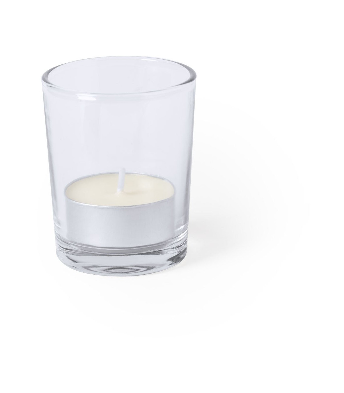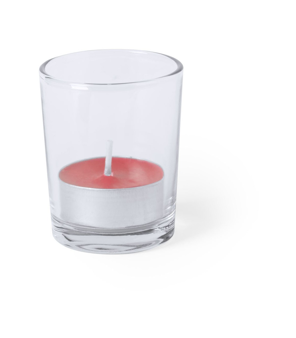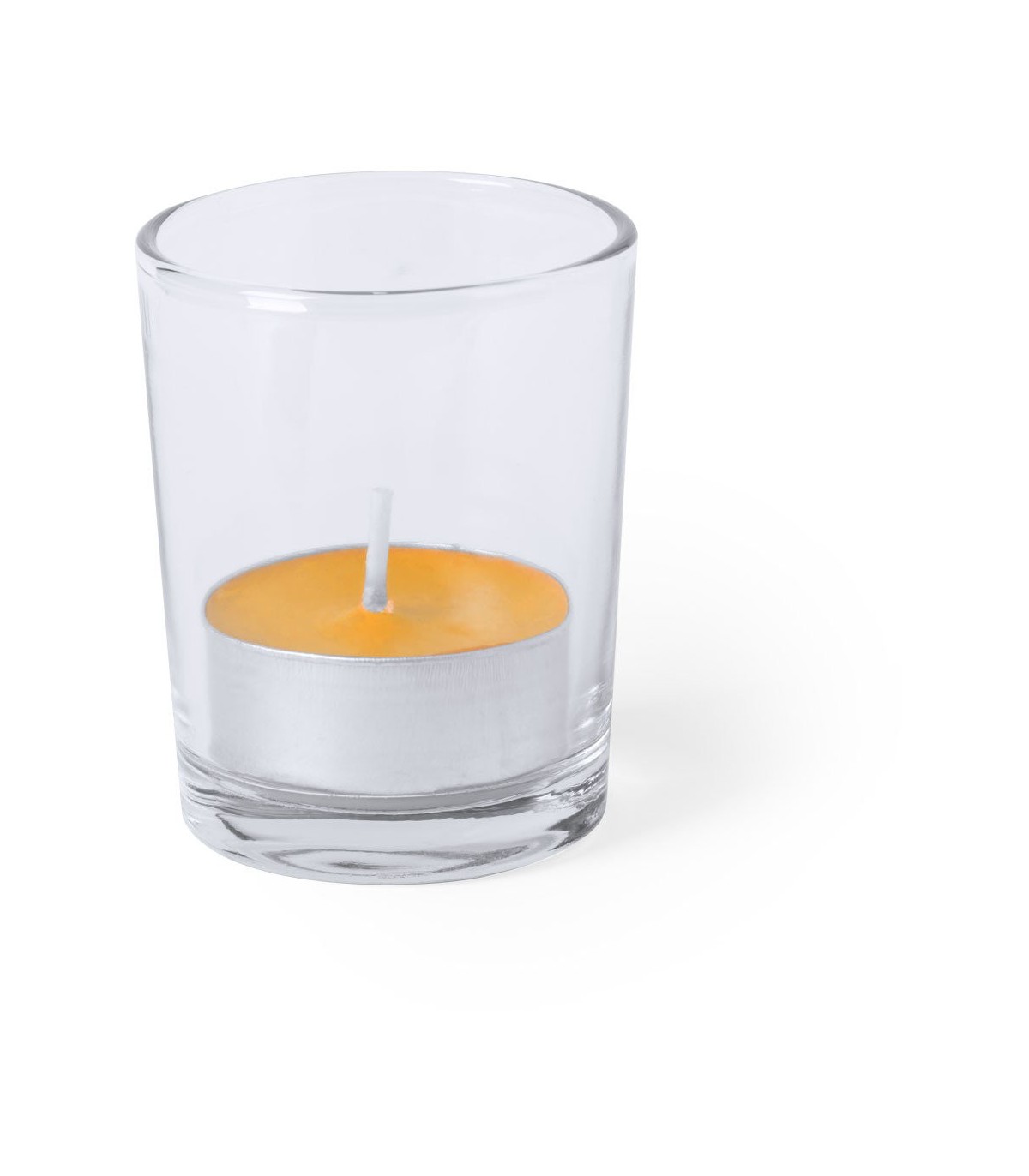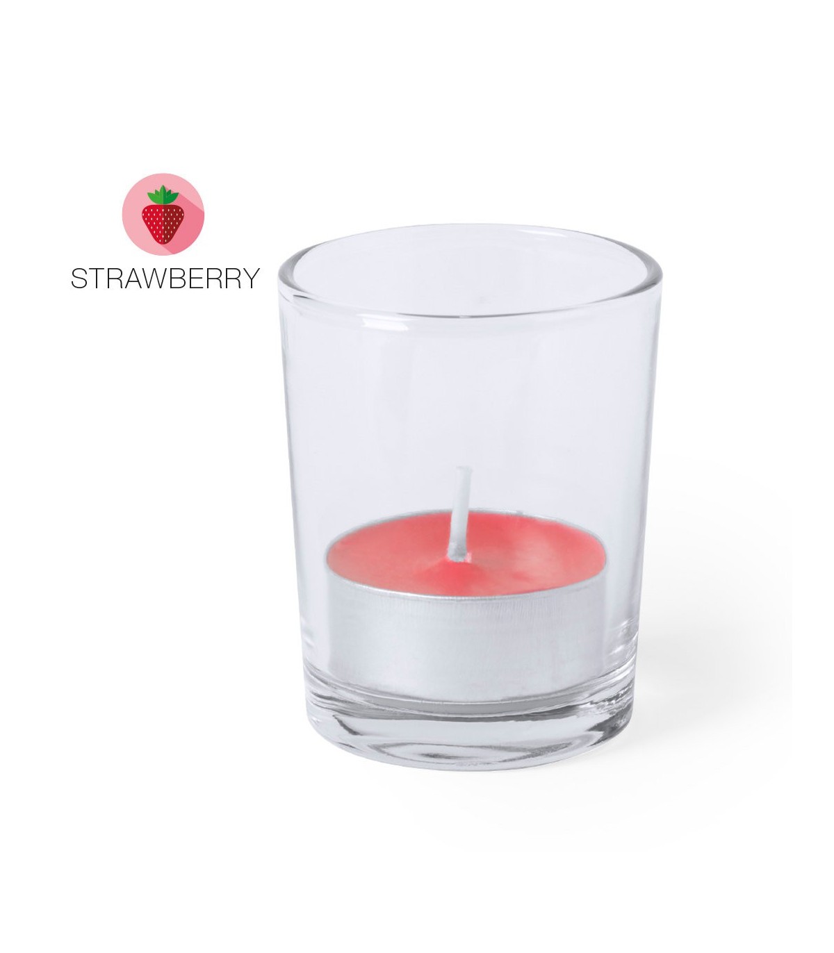 Vela aromática presentada en original tarro de cristal. Disponible en extensa gama de colores y fragancias: blanco en aroma vainilla, rojo en aroma fresa, azul en aroma lavanda, verde en aroma manzana y naranja en aroma naranja. Presentada en caja individual blanca.