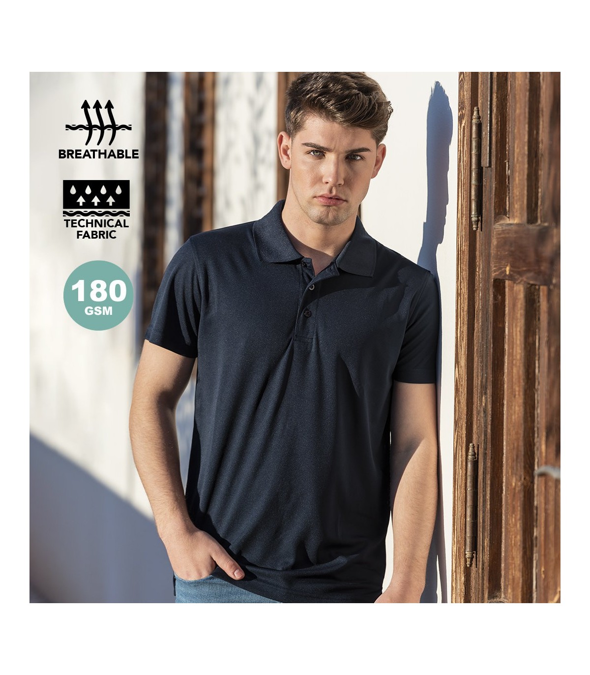 Polo técnico en material 100% poliéster transpirable de 180g/m². Con 3 botones de cierre a juego y disponible en originales colores para imprimir con tu diseño. Tallas S, M, L, XL, XXL.