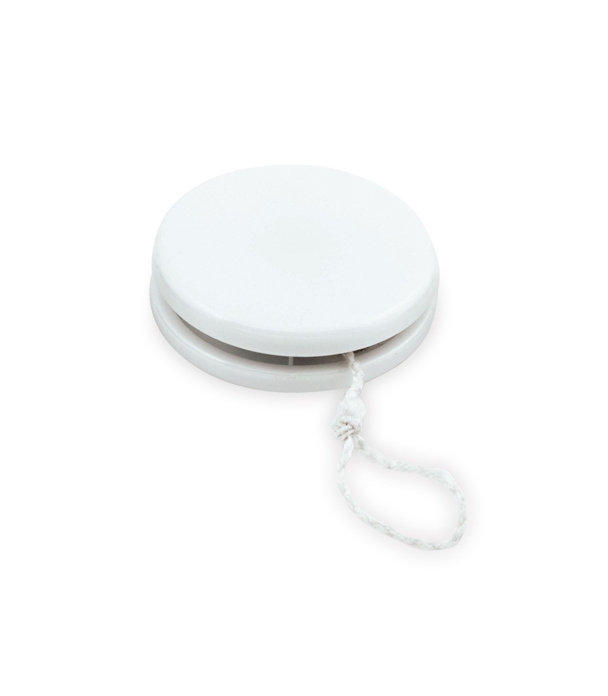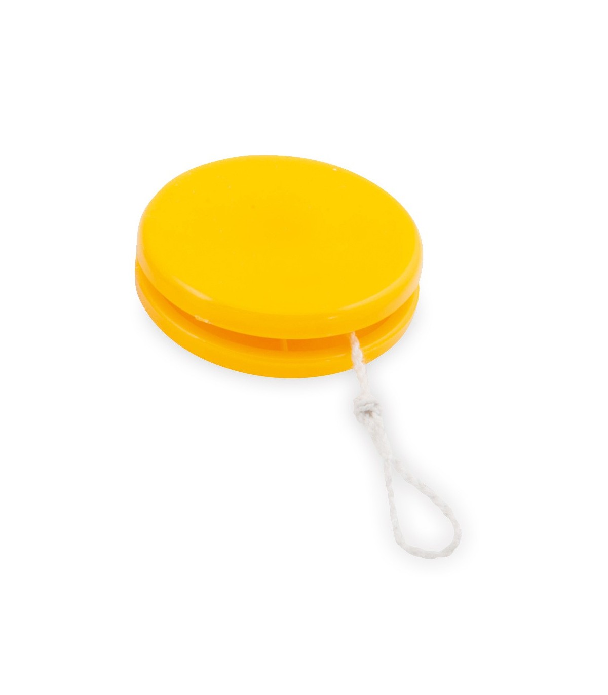 Yoyó en resistente material PS, disponible en variada gama de colores. Con hilo rizado de algodón en color blanco de 100 cm.