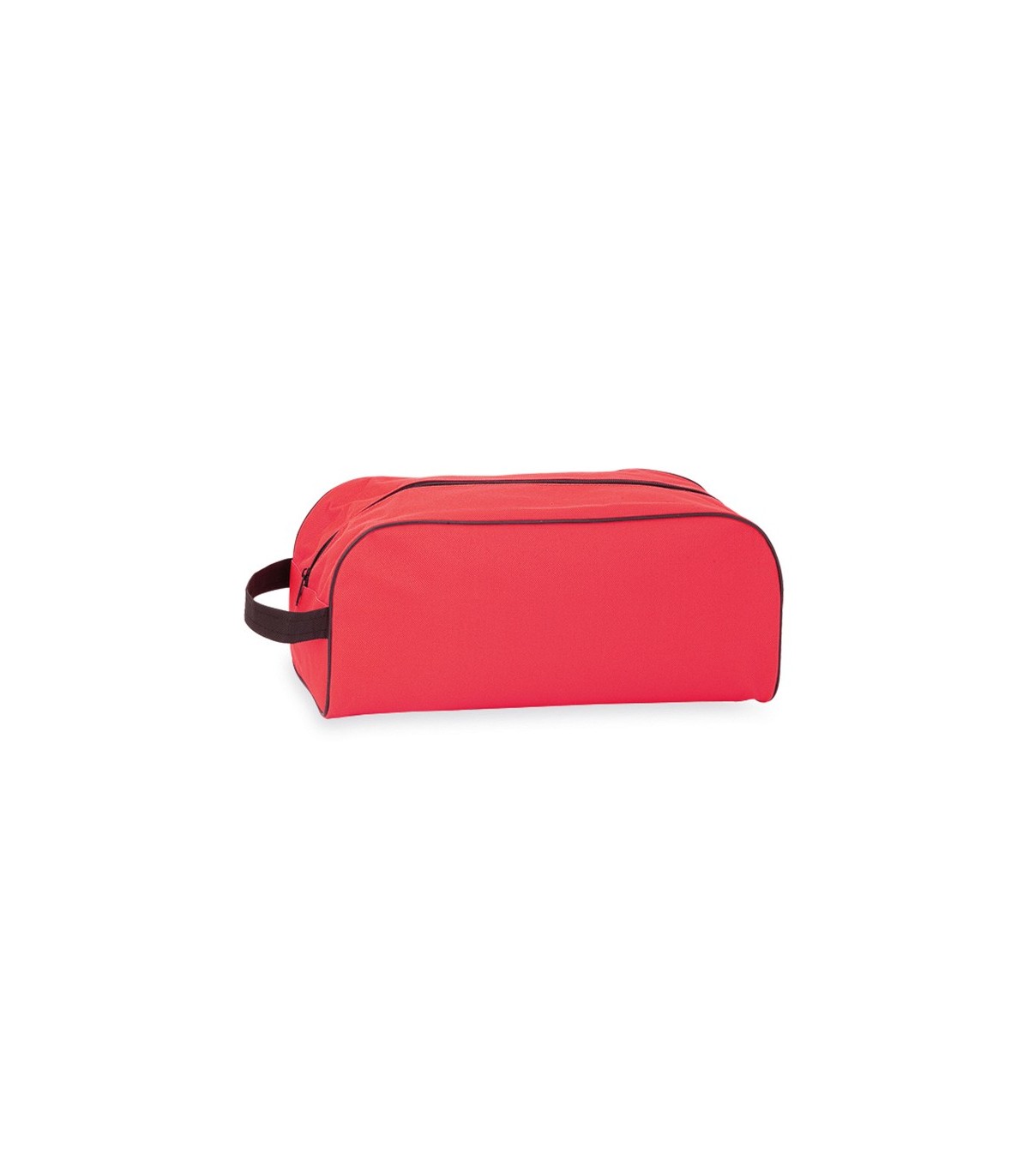 Zapatillero en resistente poliéster 600D en amplia gama de llamativos colores para imprimir con tu marca. Con cremallera, ribete de refuerzo y cómoda asa de transporte en color negro.
